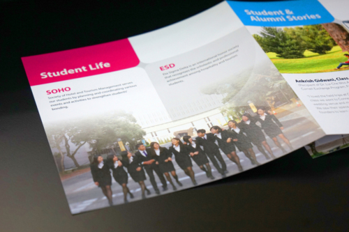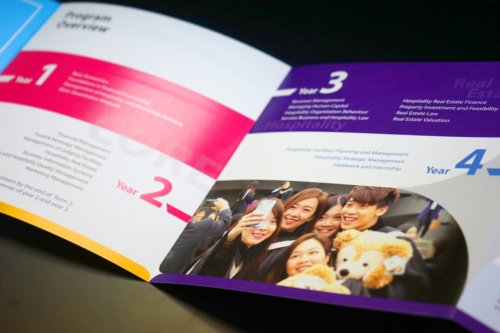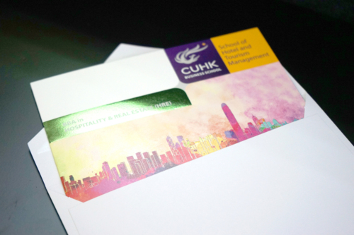 - Carve creative designs into the brochure to represent CUHK objective – not only delivering the knowledge and skills, but also to nurture the hospitality spirit in our students